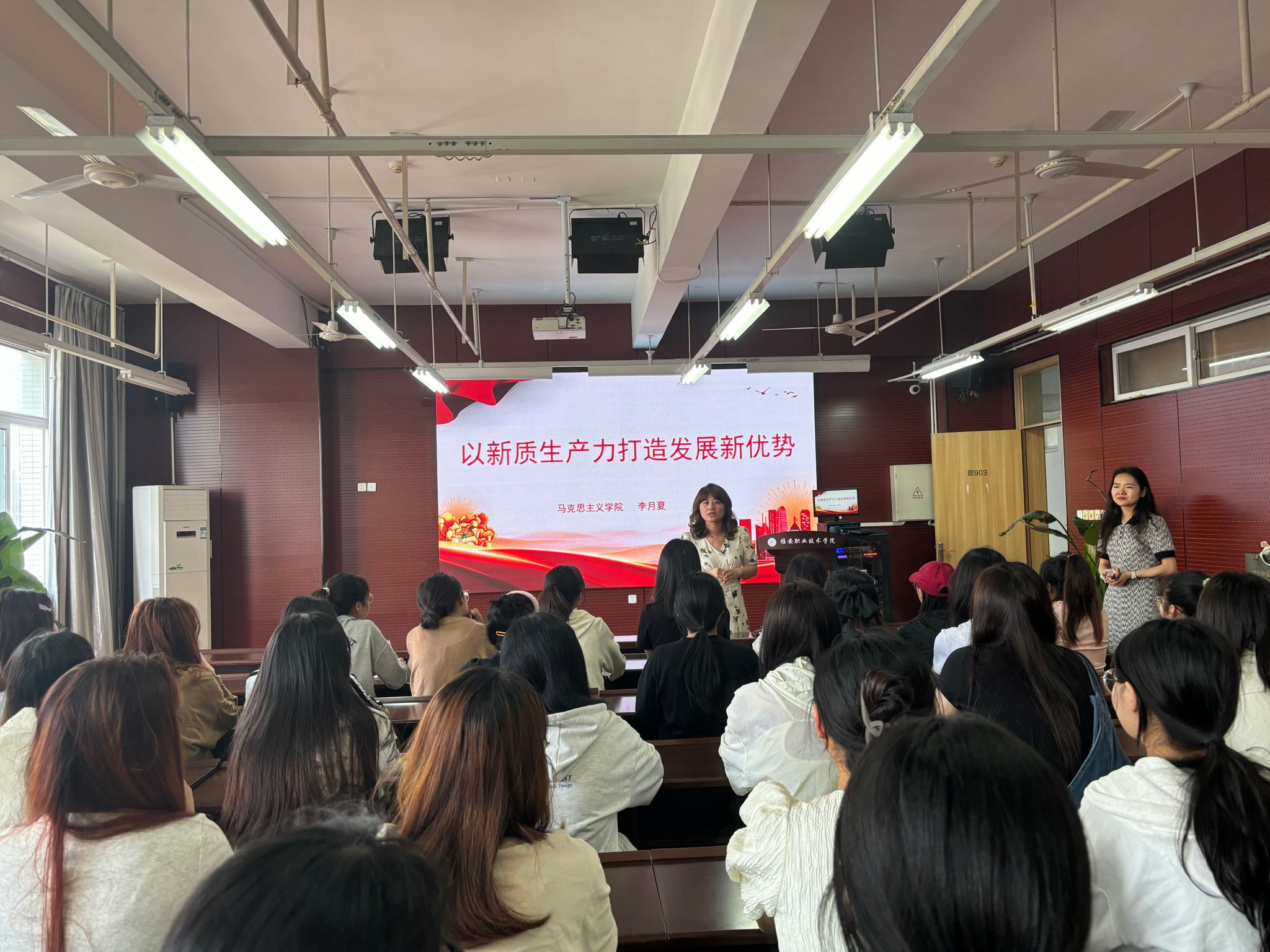 为了深入贯彻党的二十大精神,贯彻落实习近平总书记在庆祝中国共产主义青年团成立100周年大会上的重要讲话精神,以党的建设持续带动提升共青团建设水平,引领广大团员青年为全面建设社会主义现代化四川贡献青春力量,6月4日下午15:00-16:00,yl7703永利集团在青年路图书馆903开展党建带团建活动暨公司第九届员工公寓文化节“薪火”宣讲活动,邀请了“薪火”宣讲团成员——马克思主义公司李月夏老师开展“以新质生产力打造发展新优势”主题讲座,公司党总支副书记张莹、公司党员教师及各班班长、团支书、学习委员共五十余人参与本次活动。