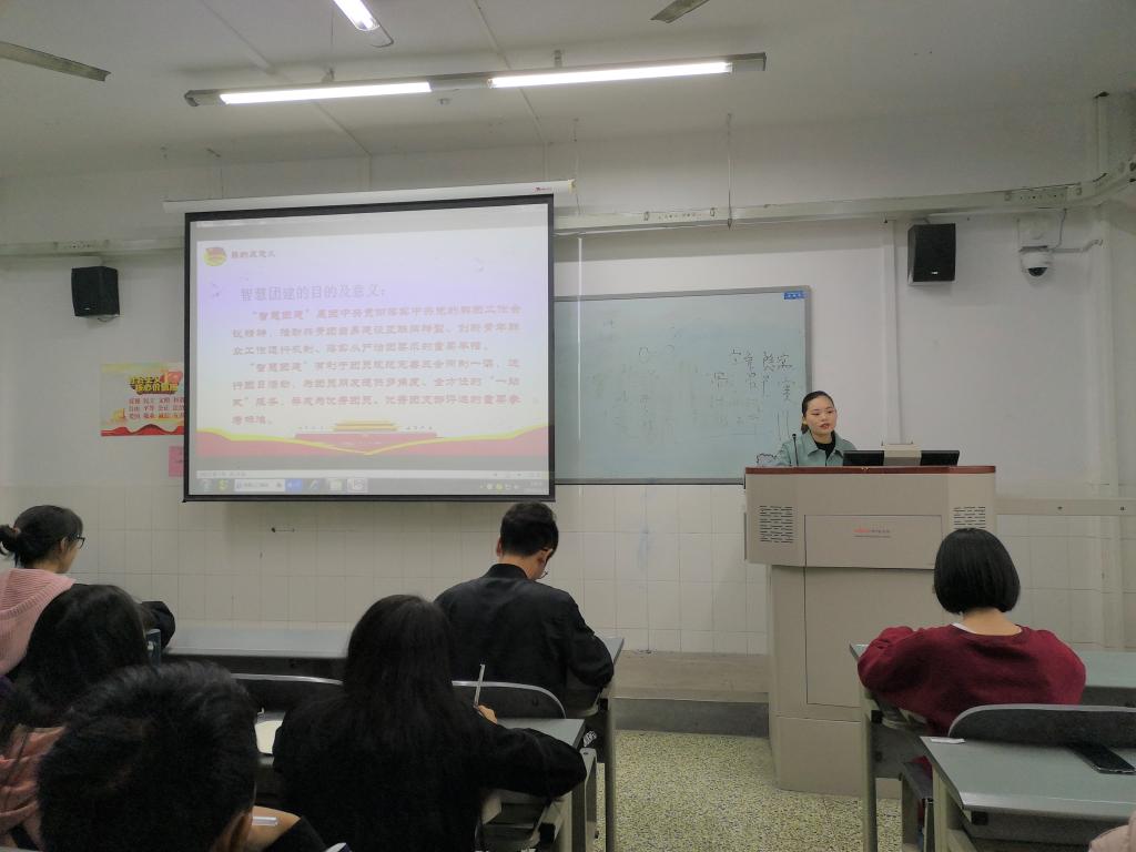 【本网讯】10月22日下午14:00,师范公司第八期团校培训于B305如期开展,加强共青团员学习共青团的理论和章程。团总支书记左习成老师、团支部副书记王涛、葛琳湘,员工会主席王蔼琳以及共青团员员工代表近120人参与了此次团校培训学习。