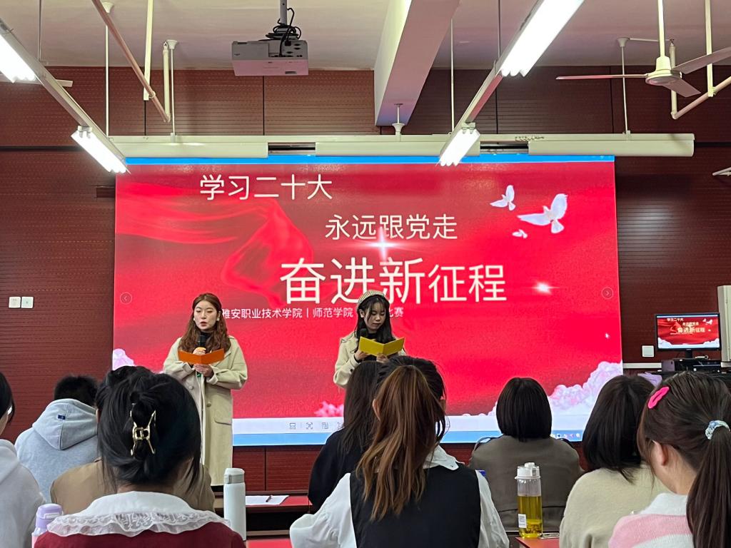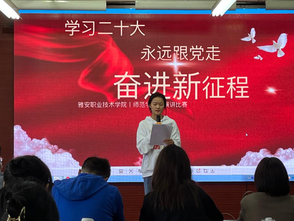 比赛中,选手们以端庄的仪态、丰富的情感、一篇篇深情的文字表达对党和国家的热爱。一篇《永远跟党走,奋进新征程》带我们走进了1921年的嘉兴南湖、1949年的天安门楼城上,走进了中国共产党的百年征程;一首《青年逢盛世,赓续正当时》让我们广大青年知道我们应该自信自强、守正创新、踔厉奋发、勇毅前行,在这新时代的舞台施展才干……最后《青春中国》展现了从1840年至今,面对国家危难,中国人以枪杆做笔,以热血为色,描绘了崭新的青春的中国。