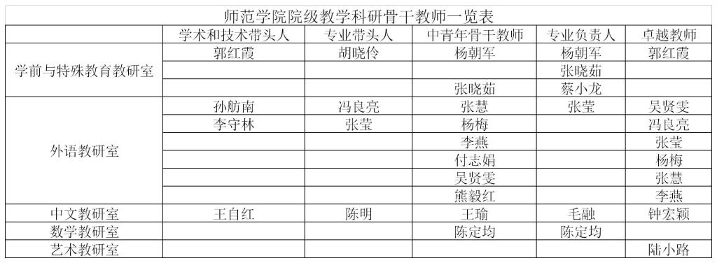 yl7703永利集团院级教学科研骨干教师一览表