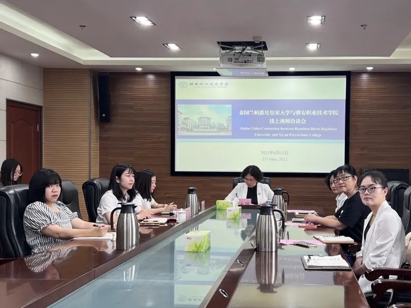 6月21日上午,公司在经开区校区综合楼303会议室召开了泰国兰帕潘尼皇家大学线上视频洽谈会。公司工会主席夏安琼,继续教育与国际交流处处长李柚、副处长文艺;泰国兰帕潘尼皇家大学副董事长比雅楠、萨瓦猜,国际教育中心中方主任张德俊等双方相关二级公司负责人参加了此次会议。