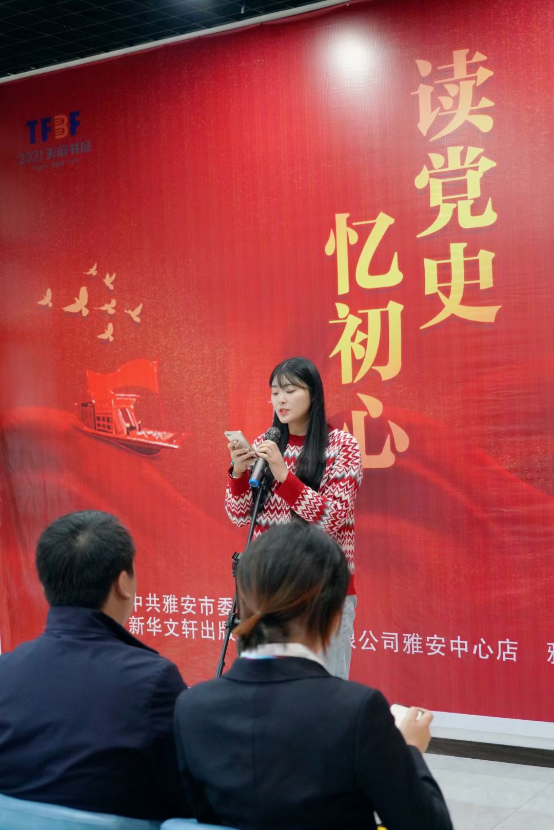 10月15日,yl7703永利集团团总支组织30名员工志愿者在新华文轩参加了由雅安市委宣传部主办的“读党史,忆初心”主题朗诵活动。