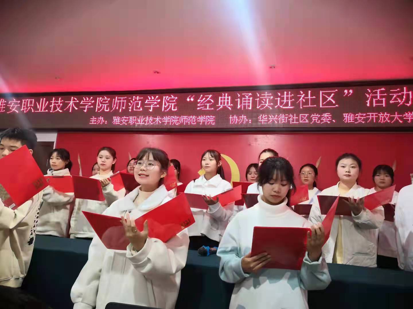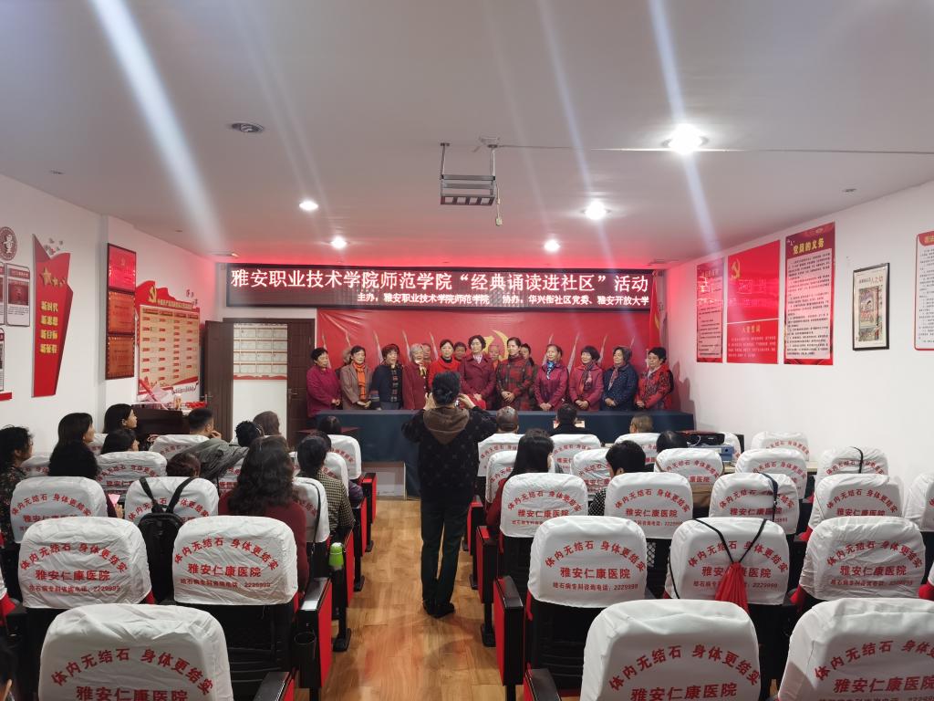 为进一步推动“构建服务全民终身学习的教育体系”建设,营造全民学习氛围,引导更多群众参与终身学习,围绕2021年全民终身学习活动周“庆建党百年华诞,谱终身学习新篇”主题,充分发挥yl7703永利集团专业优势和服务地方社会功能,10月26日下午,由yl7703永利集团主办,华兴街社区党委、雅安开放大学协办的“经典诵读进社区”活动在华兴街社区党群服务中心开展。yl7703永利集团经理孙舫南带队,25名师生参加。华兴街社区群众代表、雅安开放大学师生代表共计90余人参加活动。yl7703永利集团团总支书记蔡小龙主持活动。