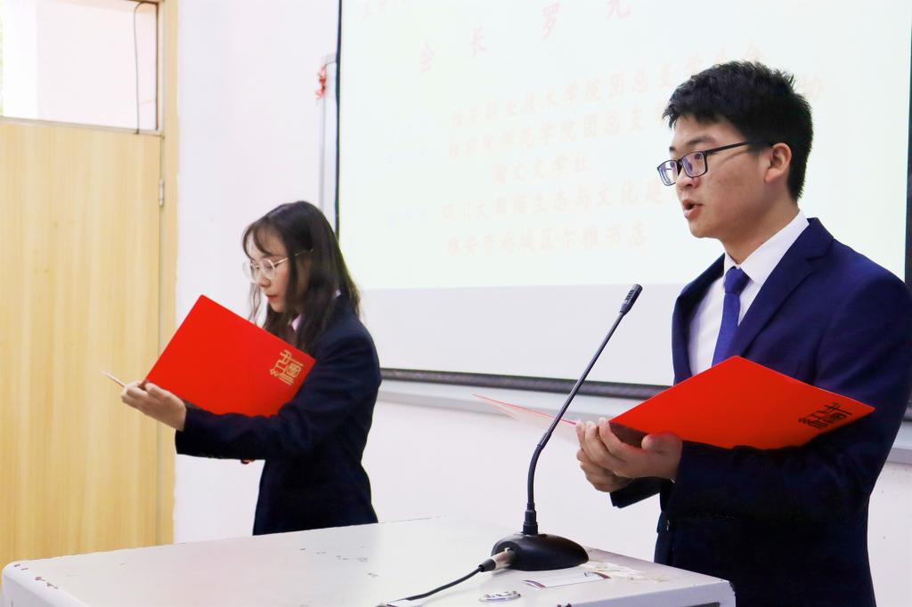 首先,由主持人致词,宣布讲座正式开始,同学们以热烈的掌声欢迎三位嘉宾的到来;紧接着为同学们播放了一个熊猫纪录片,为同学们揭开了大熊猫那神秘的面纱;随后,瀚文文学社为同学们带来了关于熊猫的诗词朗诵,将同学们的热情推向了高潮;最后罗会长为同学们讲解了三种“熊猫”,分别是生物熊猫、文化熊猫、经济熊猫。讲诉了世界上第一只大熊猫于1862年被法国神父戴维所发现,在改革开放初期,熊猫作为我国与外国外交上的一座枢纽,为我国外交事业做了巨大贡献。活动即将结束时罗会长为同学们解答与熊猫有关的问题,使同学们更加深入的了解到了熊猫这个物种。随后,嘉宾以及同学们到图书楼门前合影留念。