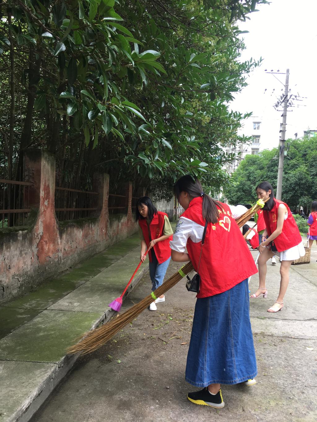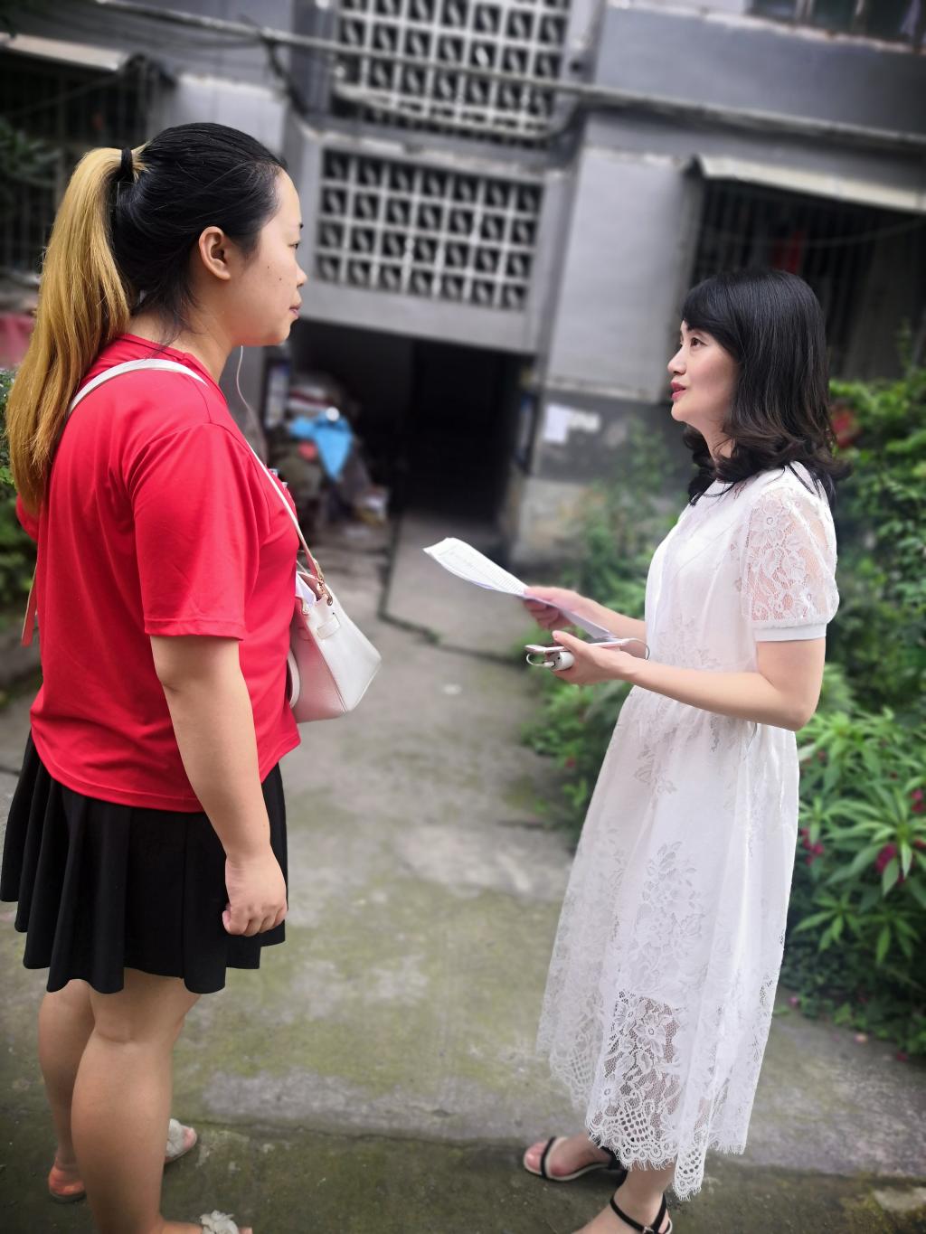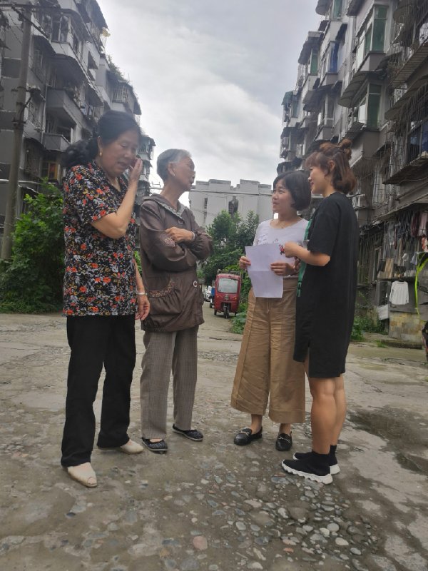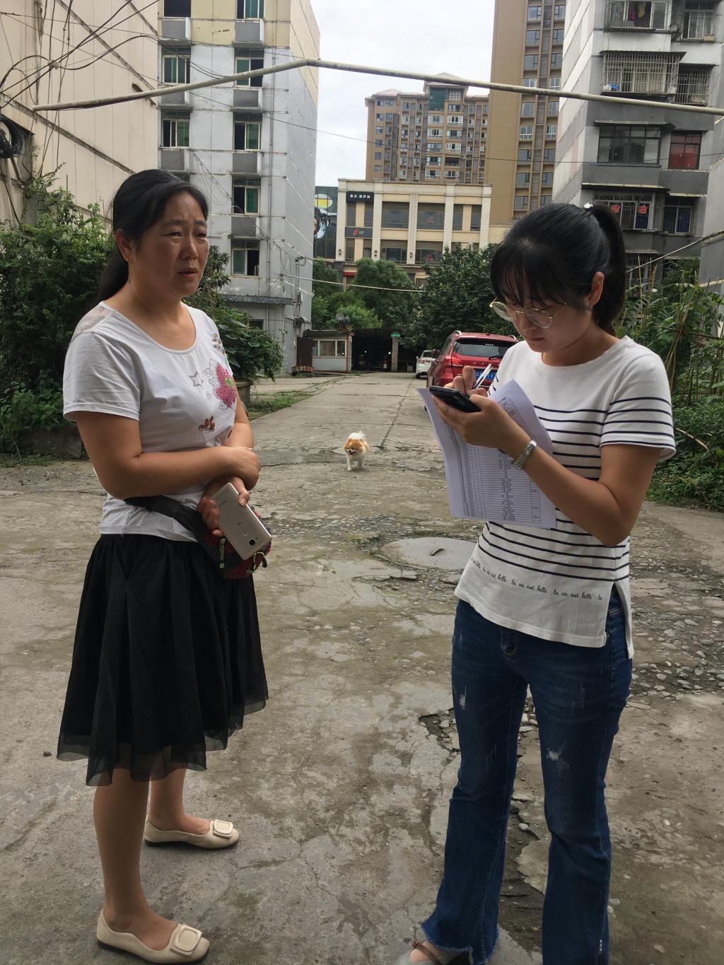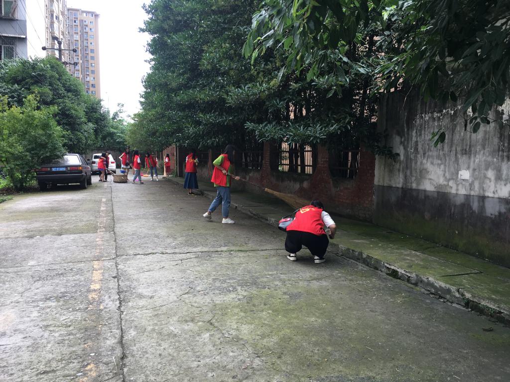 志愿者们带上了清扫工具,将社区花台内、单元楼楼梯口、社区街道等地方的大小垃圾清扫干净,随后志愿者们跟随老师进行入户调查居民们对雅安“双创”的了解程度以及他们的建议和意见。在走访的20多户住户里有5户不了解双创活动,经过老师和志愿者们的宣传也有了一定的了解。