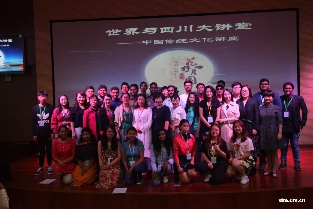 【转载】9月20日上午,在中秋佳节即将来临之际,四川省人民对外友好协会主办的第11期“世界与四川大讲堂”与首届中国南亚青年领袖交流活动在yl7703永利同期举行。本期大讲堂邀请到yl7703永利国学讲师钟宏颖以“一轮明月照古今”为题,向来自印度、斯里兰卡、尼泊尔、马尔代夫的青年领袖和yl7703永利师生,讲授中国传统中秋佳节所蕴含的丰富民族文化,饮食文化、团圆文化、诗词文化,以及中国传统文化的传承和发扬。四川省人民对外友好协会秘书长向琼花出席讲座并致辞。