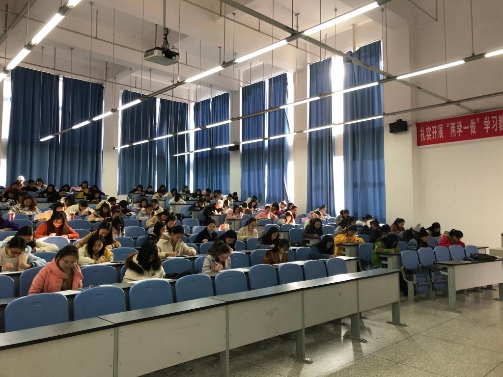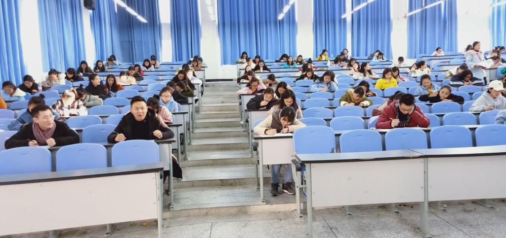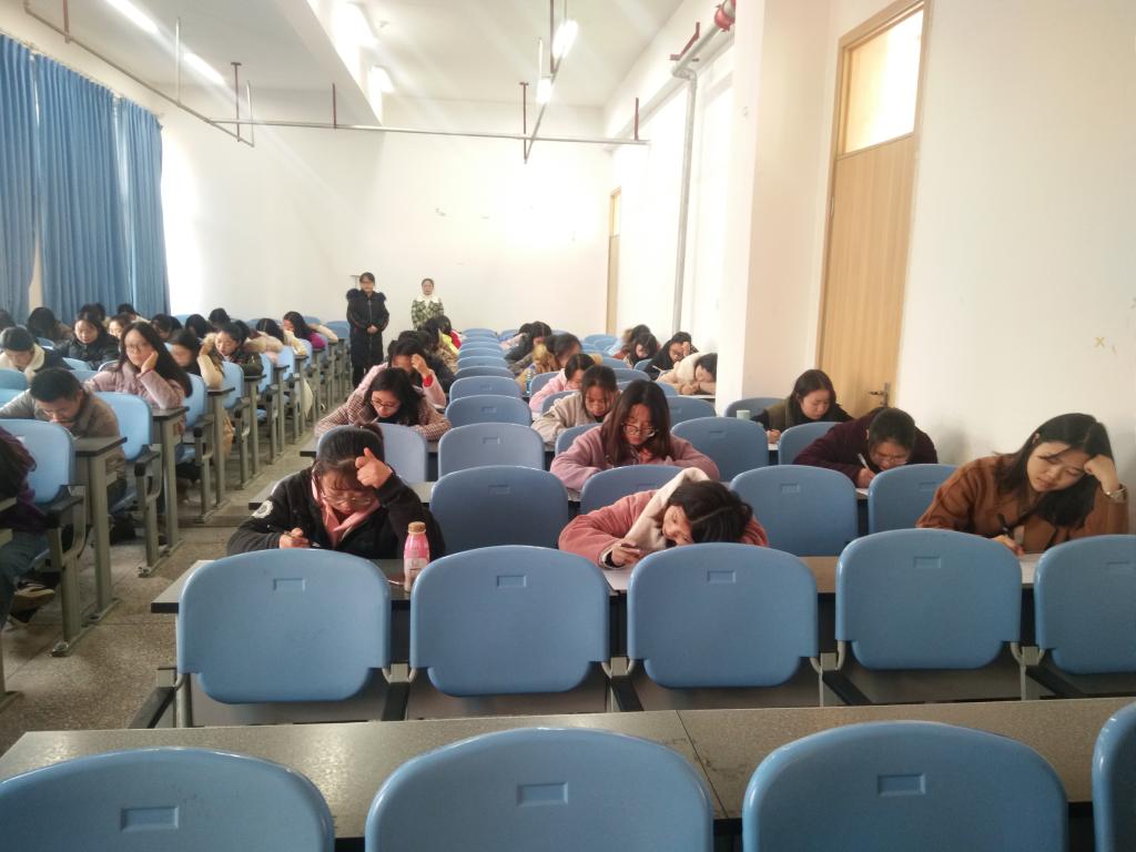 首先,学前教育和特殊教育的同学们有序进入教室到班长处签到。签到结束,同学们积极配合按监考同学的要求做到了相应的位置上。随后监考同学把试卷分发给了竞赛同学们,四点十分准时开始答卷。在活动过程中2017级的同学们认真读题和思索,回想老师的讲解和书本的内容,利用自己所学的专业知识,写下了自己的答案。最后,同学们完成自己的试卷交由监考同学处,结束了此次活动。