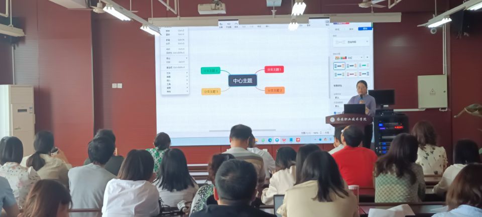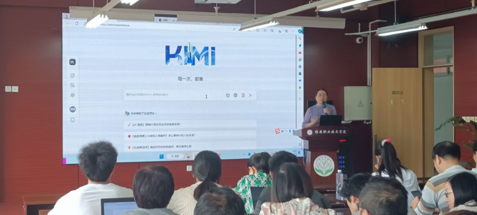 冯良亮充分利用前期外出培训的成果,向老师们详细介绍了多种适用于教学的AI工具,包括Kimi、Xmind、智谱清言等,并通过现场演示,展示了AI工具的基本操作、教学场景中的应用实例,以及如何根据不同专业需求和教学目标,灵活调整和运用这些AI工具。