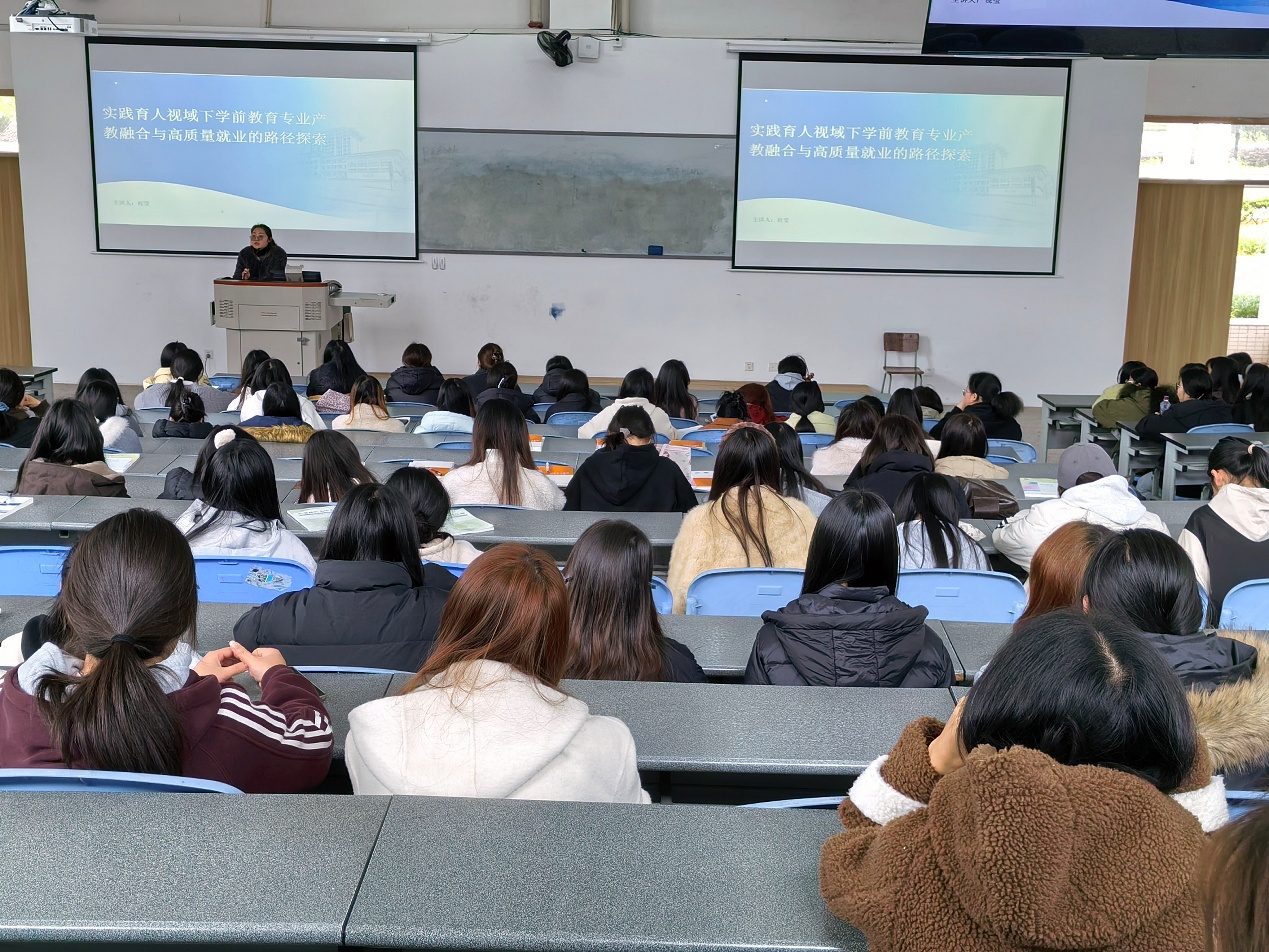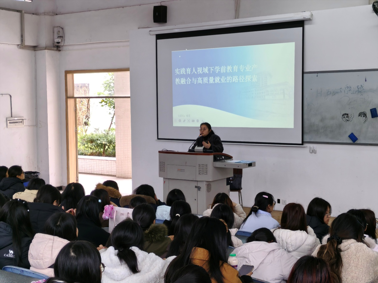 3月2日中午,由yl7703永利集团主办的“实践育人视域下学前教育专业产教融合与高质量就业路径探索”专题讲座在青年路校区图阶101教室顺利举行。本次讲座由学前教育专业教师祝莹主讲,yl7703永利集团250余名师生到场聆听,现场座无虚席,交流氛围热烈。