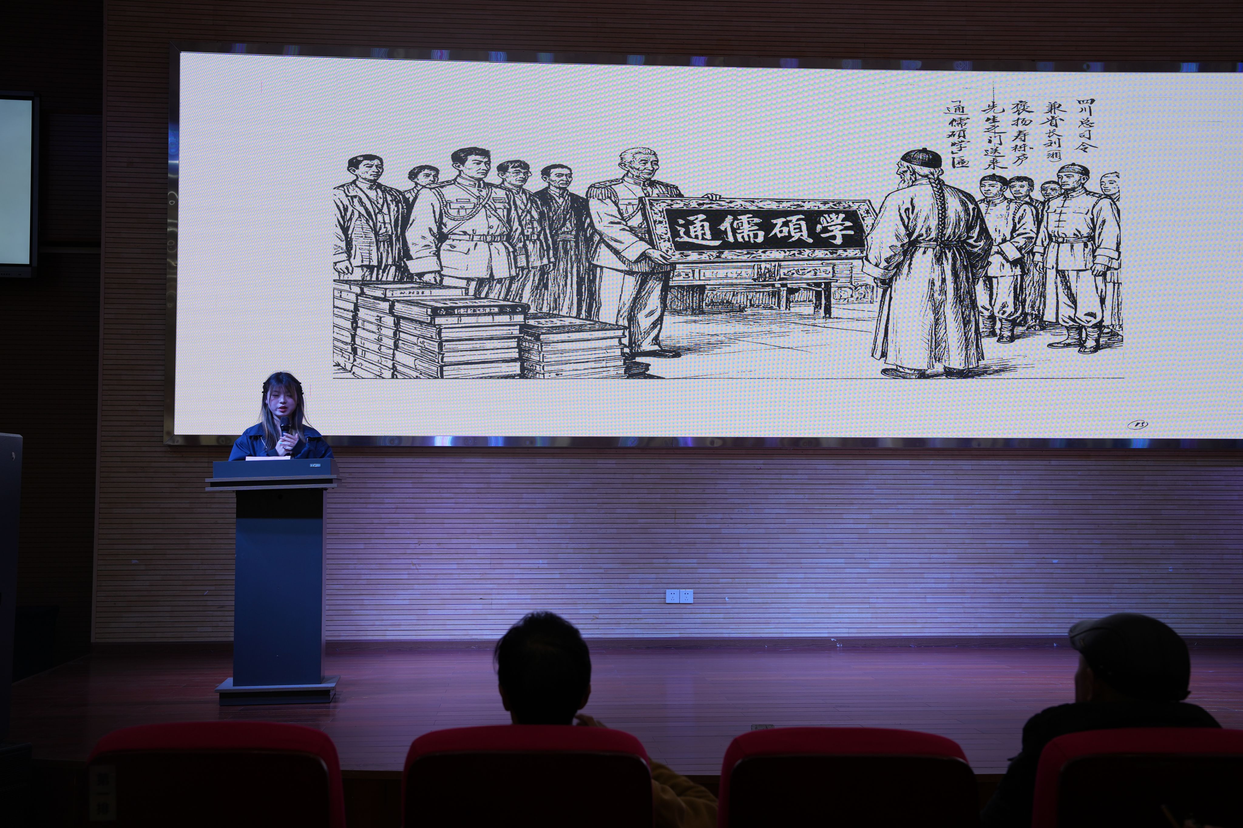 在专题讲座环节,作为吴之英先生曾孙的吴洪武先生,以其先辈求学与报国的人生轨迹为主线,生动讲述了吴之英先生在民族危难之际,坚持“经世致用”的治学理念,投身思想解放与救亡图存的感人事迹。他结合珍贵史料与家族口述,深刻阐释了吴之英先生身上所体现的反帝爱国精神、学贵创新的时代精神、甘做人梯的奉献精神、自立自强的奋发精神以及唯仁求义的战斗精神,让在场师生对这位巴蜀先贤的卓越风骨与家国情怀有了深刻的理解与感悟。